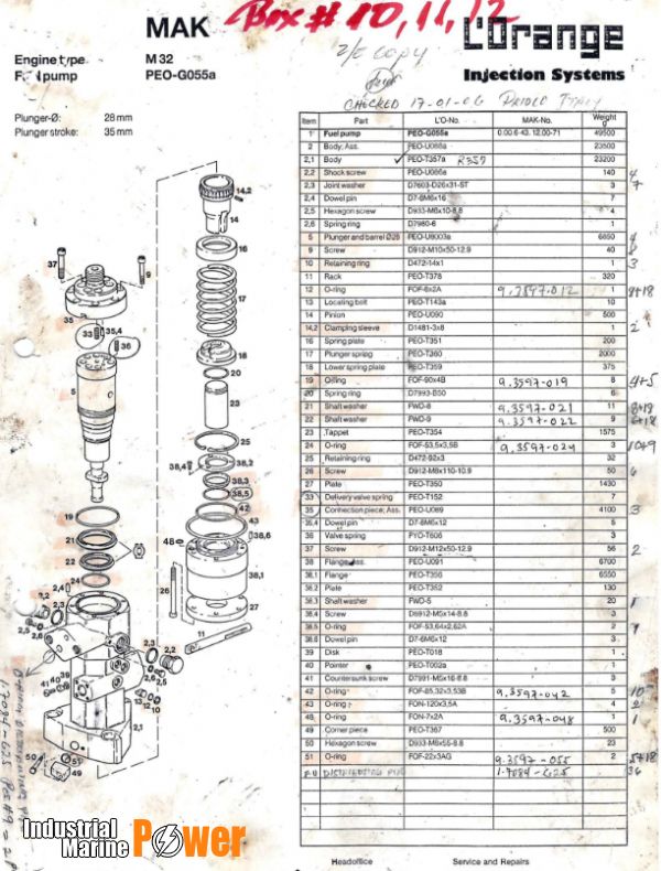 | 8 | O RING | O RING FOR FUEL PUMP PEO-G055a, POSITION 38.5, DETAILS NOT AVAILABLE IN ORIGINAL MAKER^S MANUAL | 38.5-FOF-53.642.62A- M32 PEO-G055a//// | 0 | 3 | PCS | NO |
