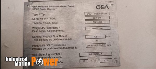| WESTFALIA | OCU1 OSE20-91-067 | AG 2817294 A | 702VA005 | 900 / 970kg | 4.6 m3/h | 0.04 to 0.10 / 0.15 to 0.25 | 2015 |