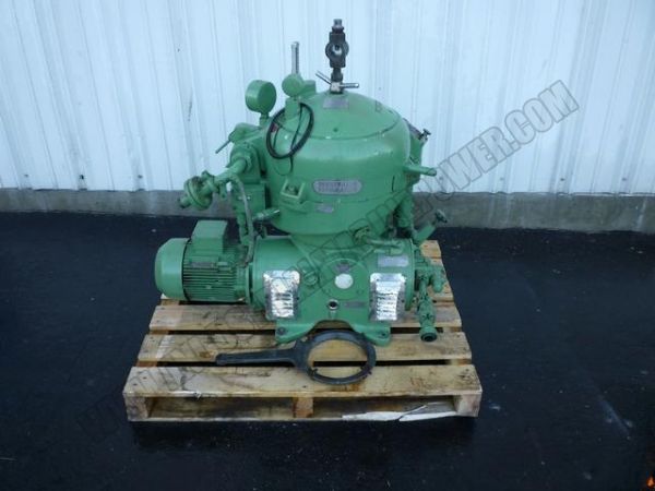 Used rebuilt westfalia l. O. Purifier westfalia osa 7-02-066 disc type centrifuge. Separator design. Pumped light phase discharge 3/60/460v drive motor. Tools included. 6 month mechanical warranty. For sale: centrifuge compeltely re-conditioned machine with guaranty.
