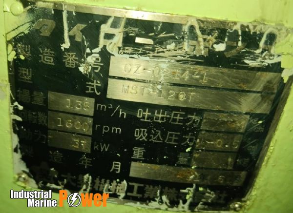 DESCRIPTION : TAIKO PUMP MAKE : TAIKO TYPE : MST-120 T CAP : 135 m3/h RPM : 1800 KW : 37 CONDITION : NEW BRAND PHOTOS : AS ATTACHED PRICE : ON REQUEST