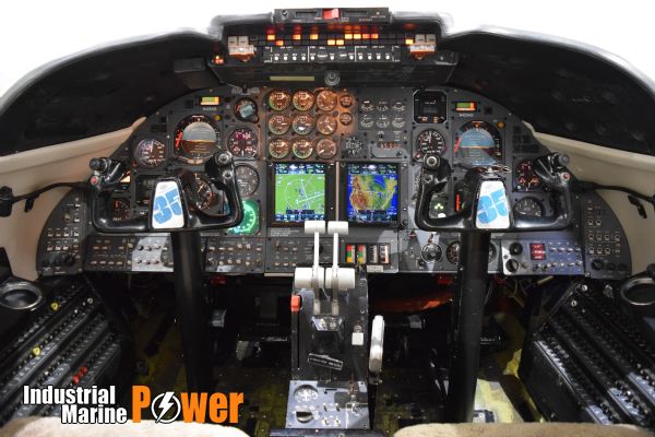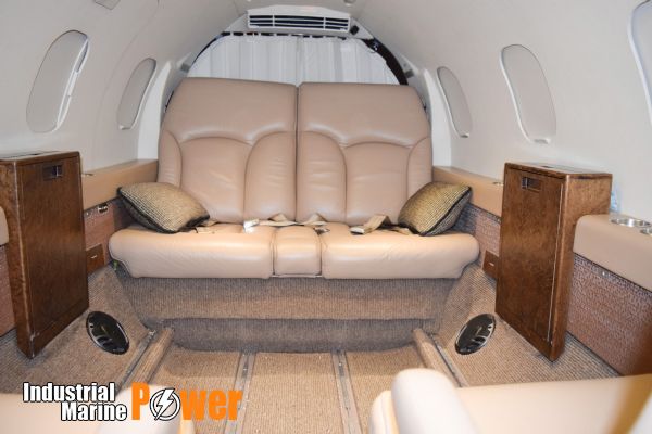 Eight place configuration, Four executive brown leather chairs, Aft divan with two pull-out executive tables, burled wood cabinetry, composite ultra-leather headliner, forward belted potty, auxiliary cabin heat, windshield aux heating defog fans, CD stereo system, executive cabin door.