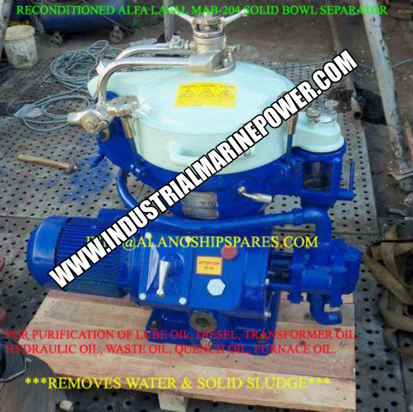 Refurbished Alfa Laval MAB-206 Soild Bowl Centrifuge For Lube Oil, Hydraulics Oil, Engine Oil, Transformer Oil, biodiesel