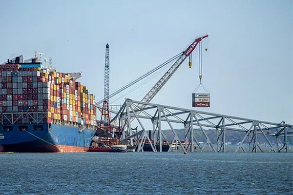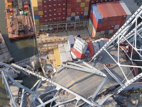 Crews they reported have now removed 120 containers from the bow of the vessel and expect to move approximately 20 more in the coming days to clear a path for the salvage team to safely reach the debris resting on the vessel. Governor Moore reported that each of the laden containers weighs between 1.5 and 2.5 tons and that in addition, the salvage teams project that there are 3,000 to 4,000 tons of steel from the bridge sitting on the bow of the vessel.