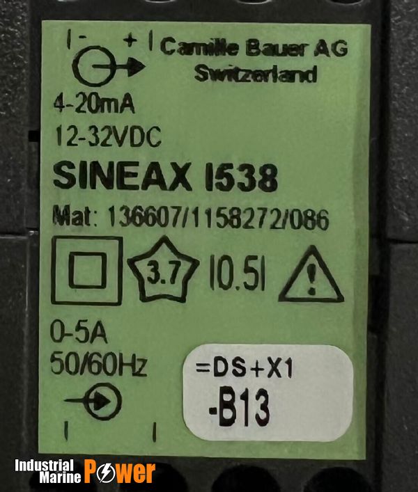 • PRODUCT NAME: CAMILLE BAUER SINEAX I538 TRANSDUCER FOR AC CURRENT TO DC VOLTAGE