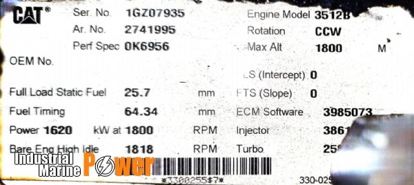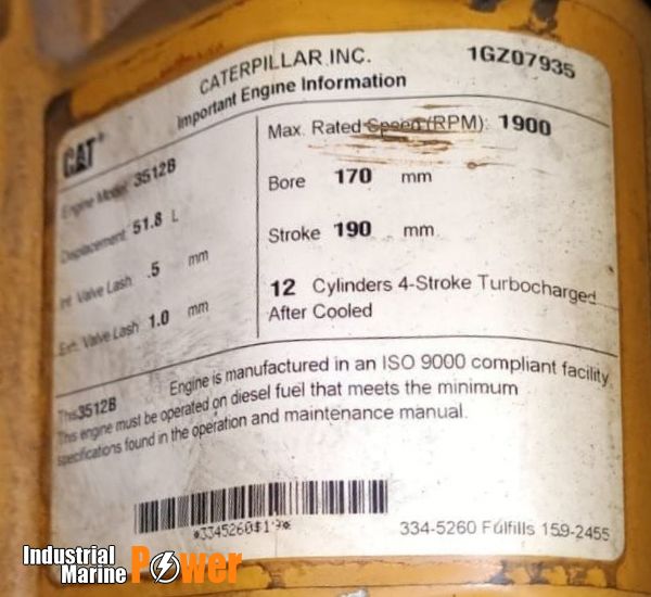 Brand: CAT Type: 3512B Quantity: 01 Pc Condition: working condition (Used) Price: On request.