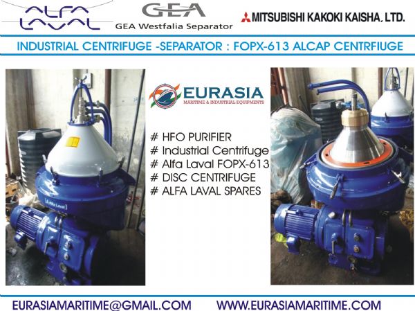 | Details : | EURASIA MARITIME & INDUSTRIAL EQUIPMENT'S is one of the leading stockiest supplier & exporter of reusable/used/second hand ship - Industrial machinery & spares. We offer a wide range of services to customers within the maritime, offshore and industrial sectors. Our source is second - hand Machinery & spare - parts from Alang ship breaking yards, we ensure quality by testing & overhauling. We serve our valued customers in a very prospective manner. We assure providing professional services, expertise, good co-operation for all times and support in the field of ship machinery. We do optimal sourcing from Alang, the largest ship-breaking yard in the world. Our products ranging from Main Engine , Auxiliary Engines, Oil separators,Turbochargers, marine pumps, compressors, safety equipment’s. We provide all kinds of genuine Ship Spares, Marine Parts & Equipment’s and consumables at very competitive prices. WE DEAL IN FOLLOWING MARITIME AND INDUSTRIAL EQUIPMENT'S 1. Marine Main Engine and Generators 2. Turbochargers, Governors, Fresh water Generators 3. Deck and Crane Hydraulic motors and Pumps. 4. Marine Air Compressors and Heat Exchanger's. 5. Ship Automation and Navigational equipment's 6. Alfa Laval oil Purifier, Separator, centrifuge machines and spares 7. Westfalia separator, purifier machine and spares 8. Mitsubishi Kakoki and Mitsubishi Samgong oil Purifier and spares. We are Exporting Centrifugal Marine Oil Separators, industrial centrifuge, Oil Purifiers, Biodiesel Centrifuges, waste oil purifier Manufactured By Alfa Laval, Westfalia, Mitsubishi kakoki - Samgong. The processing capacity of the centrifuge machines are between 500LPH to 20000LPH. Most of the Alfa Laval centrifuges we sell come from our own stock of used / reconditioned centrifuges |