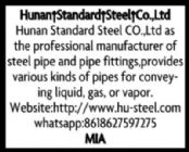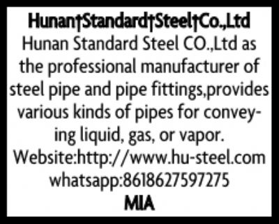 | Details : | Hunan Standard Steel CO.,Ltd as the professional manufacturer of steel pipe and pipe fittings,provides various kinds of pipes for conveying liquid, gas, or vapor.Our main products include Seamless Steel Pipe,Casing&Tubing,ERW Steel Pipe,LSAW Steel Pipe,SSAW Steel Pipe.If you have any requirements or interests ,please let us know,you will get our maximum support and quality services. |