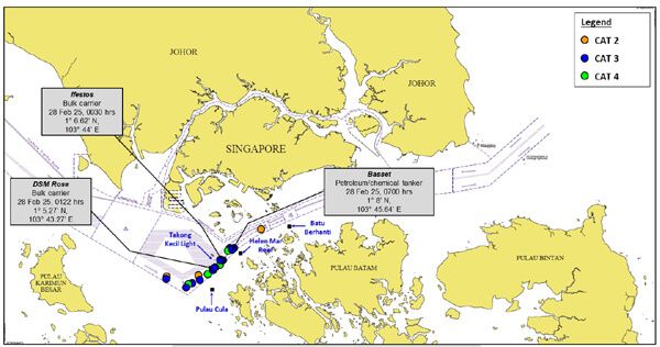 Authorities in Singapore responded to an “unauthorized boarding” of a chemical tanker in the Singapore Strait friday morning, February 28, and evacuated an injured crewmember. It was the latest in a spike of crimes along the Singapore Strait, but the first this year when a crewmember required medical attention. Later ReCAAP ISC reported there had been two other incidents earlier on Friday with the group warning of a possibility of more assaults on ships.