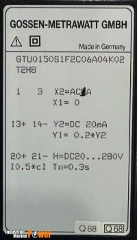 • PRODUCT NAME: GOSSEN-METRAWATT GMBH GTU 0150 CURRENT TRANSDUCER GTU0150S1F2C06A04K02T2H8