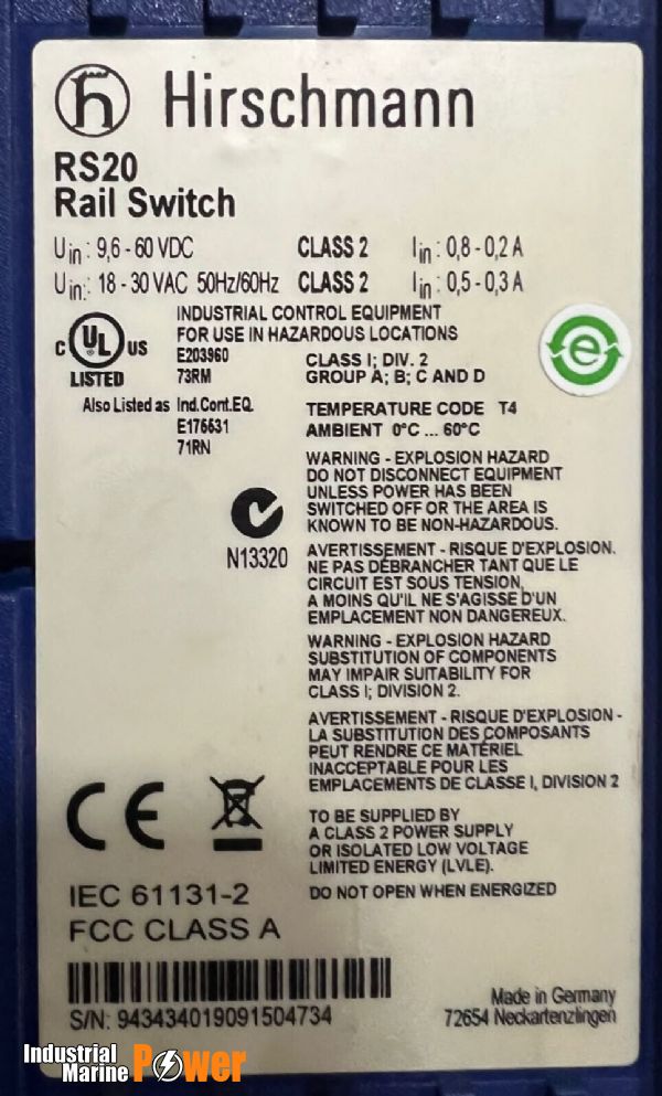 • PRODUCT NAME: HIRSCHMANN RS20 RAIL SWITCH RS20-0800S2S2SDAEHH