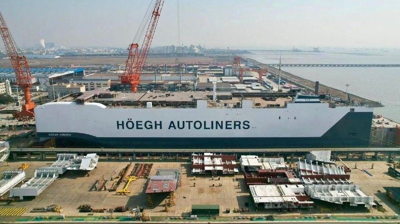 The first vessel of the class, Hoegh Aurora, was named and christened today at the China Merchants Heavy Industry yard in Jiangsu, China, where two other members of the class have also already been launched. The first vessel will go into service immediately the company reports and they expect delivery of two vessels every six months until the first half of 2027.