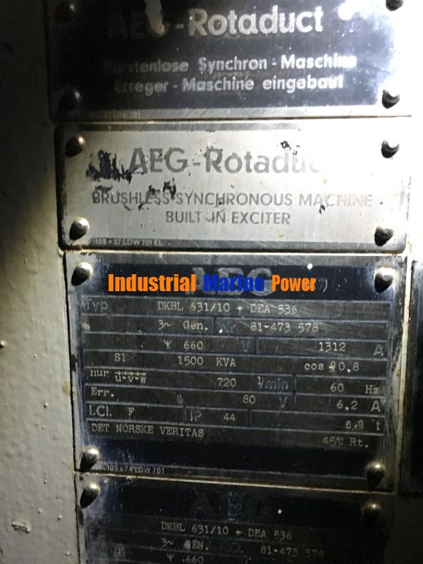 Each engine is 1290 kw @ 720 rpm 1500 kva 60 hz