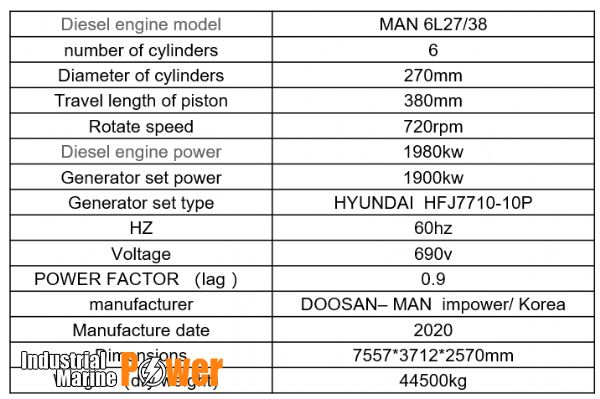 Gen.set power:1900 kW