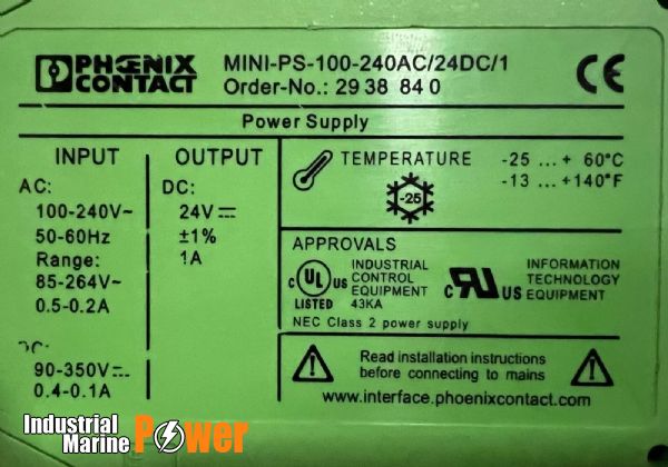 • PRODUCT NAME: PHOENIX CONTACT MINI-PS-100-240AC/24DC/1 POWER SUPPLY UNIT