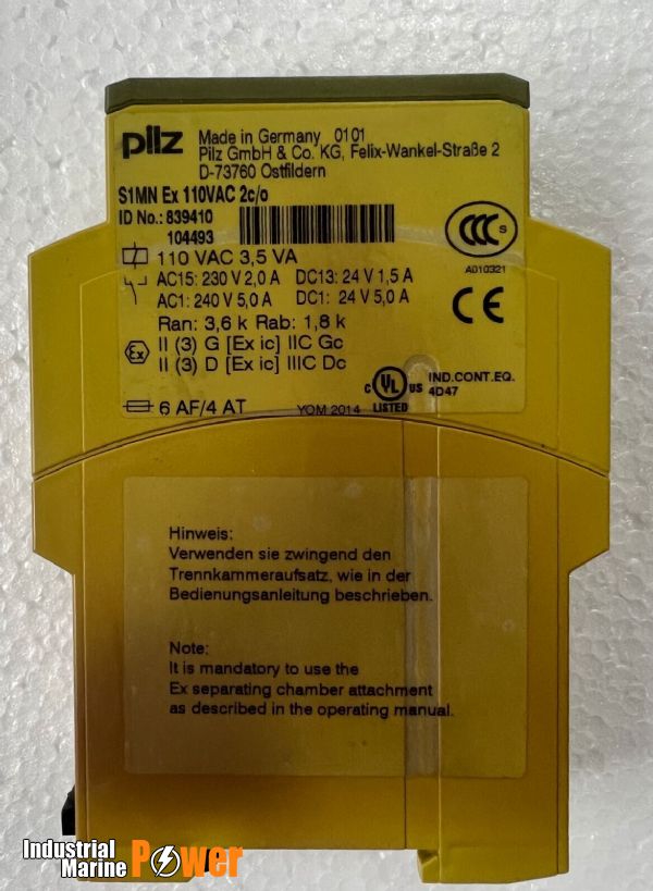 • PRODUCT NAME: PILZ S1MN EX 110VAC 2C/O THERMISTOR MONITORING RELAY 839410