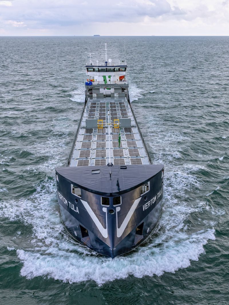 In collaboration with TNO and shipping company Vertom, the system was tested on the Vertom Anette. The insights gained were subsequently applied to the Vertom Tula, where 44 Solar Flatracks reduce approximately 20% of the onboard hotel load. The project was co-financed by the European Union’s Just Transition Fund (JTF), part of the European Green Deal towards climate neutrality by 2050.