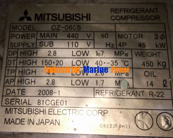 POWER SUPPLY: MAIN:440V, 60Hz, MOTOR :3phase,4P,45kW.