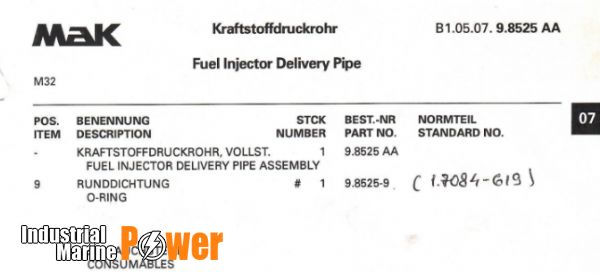 | 9 | O Ring | O Ring for HP fuel pipe as per sample. No part Number available. O Ring ( high Temp ) to be | For HP pipe , fuel pump end -Not identified-Not identified/// | 0 | 5 | PCS | NO |