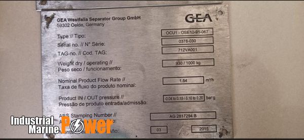 | WESTFALIA | OCU1 - OSE10-91-067 | AG 2817294 B | 712VA001 | 930 / 1000kg | 1.54 m3/h | 0.04 to 0.10 / 0.10 to 0.20 | 2015 |